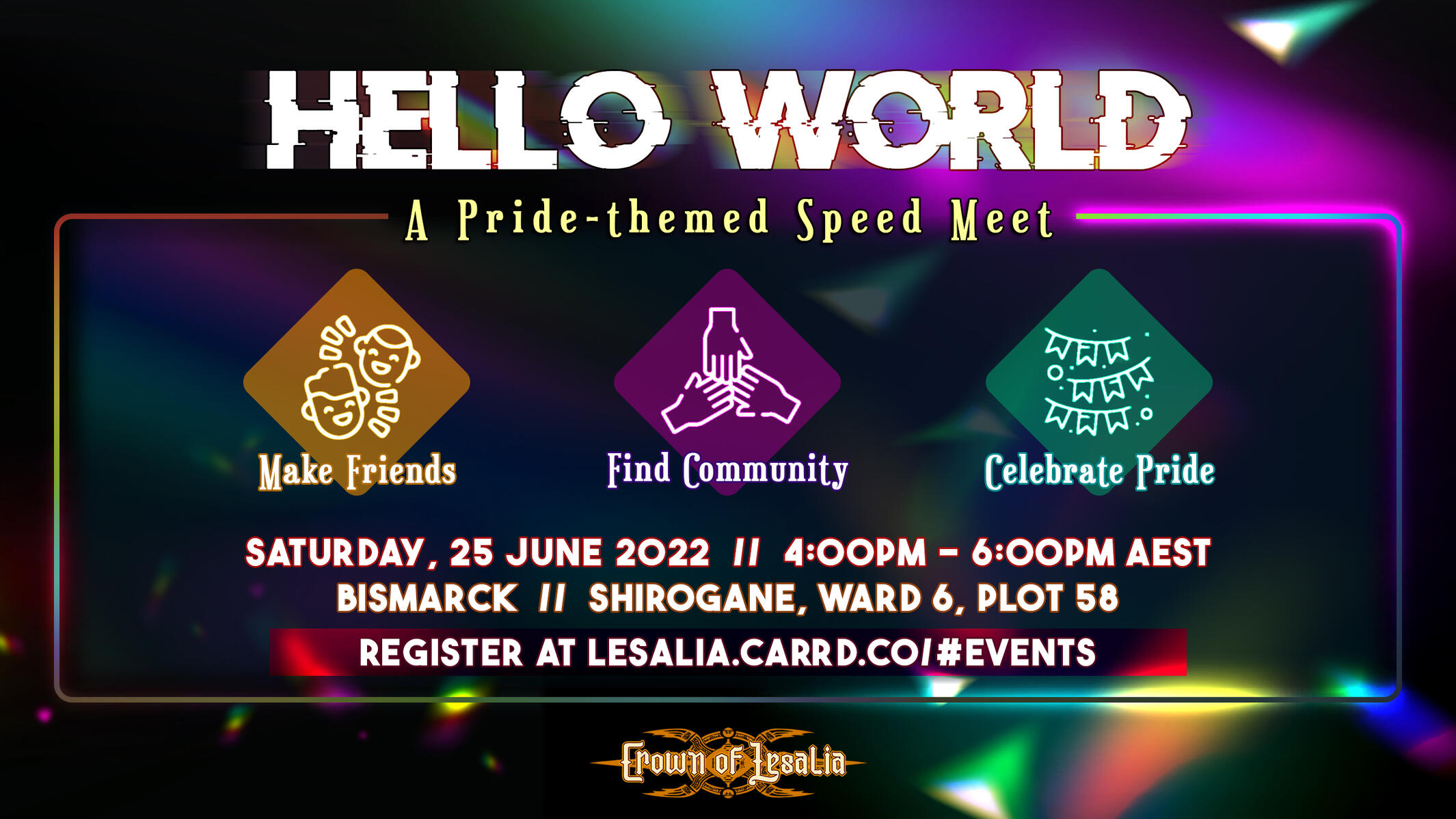 JUNE | Hello World | A Pride-themed speed meet to commemorate the first Pride Month on Materia. |